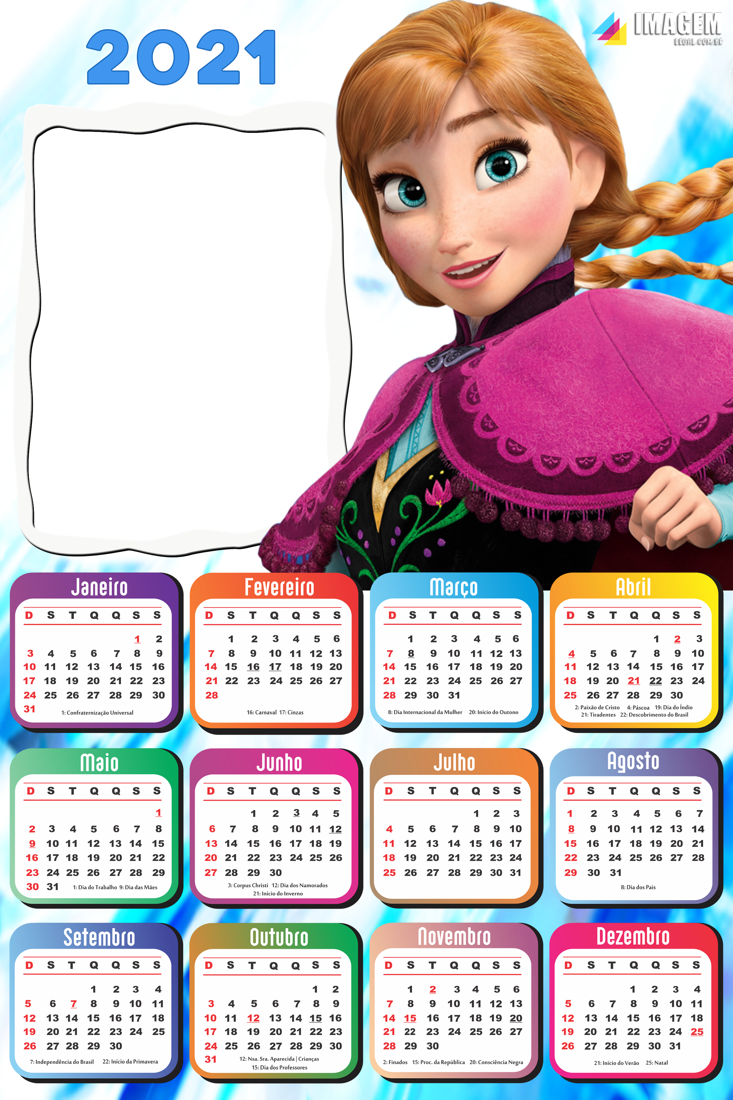 Este calendario anual del 2021 es muy práctico. Calendario para imprimir en pdf, jpg y excel. Ideal para utilizar como calendario escolar, calendario de iglesia, planificador personal, referencia de horario. ✓ gratis para uso comercial ✓ imágenes de gran calidad.