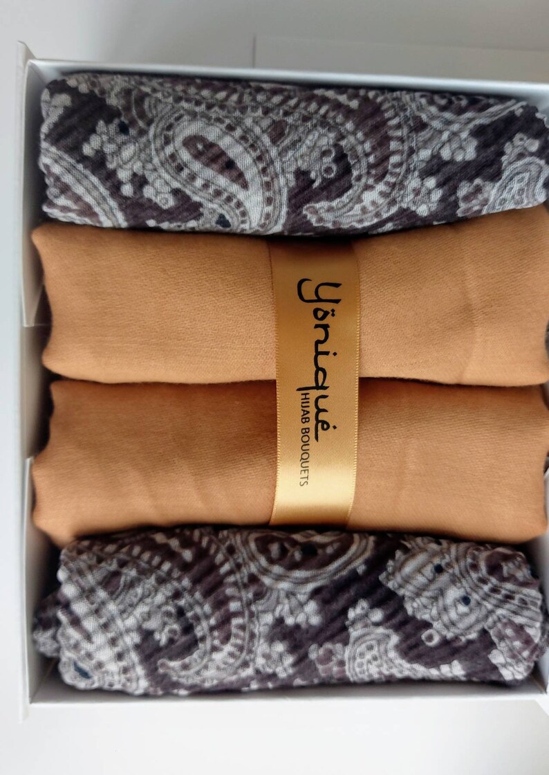 Shop a box of 6 for ₦10000 only! Our chiffon hijab gift set is a beautiful pairing of hijabs with underscarves. Gift box, scarf, hijab, gift set, perfumed, bouquet, for her, flower, custom, luxury. Paket hijab, scraft, beserta aksesorisnya.
